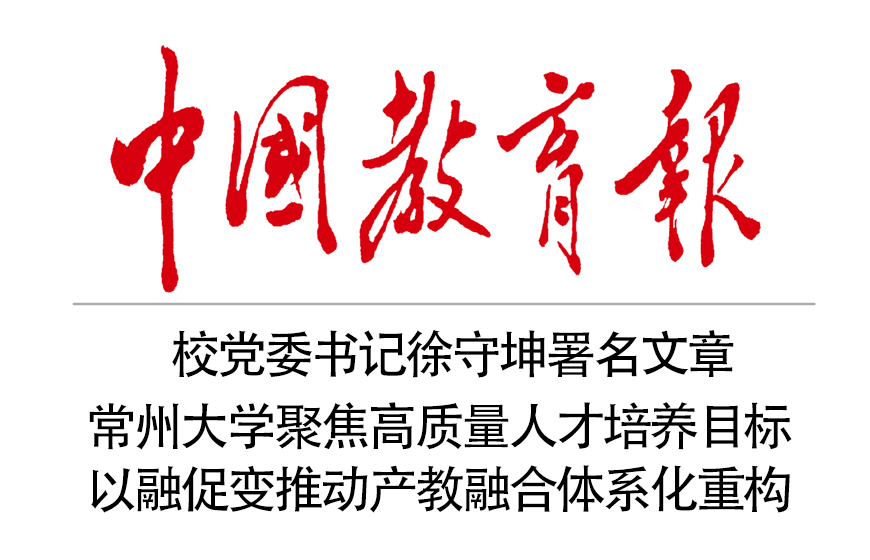 《中国教育报》以“常州大学聚焦高质量人才培养目标 以融促变推动产教融合体系化重构”为题刊发我校党委书记徐守坤署名文章