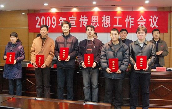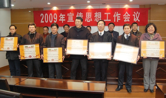 党委副书记王凯全宣读了2008年校对外宣传工作先进集体表彰决定,副校长陈奎庆宣读了2008年校优秀教工通讯员表彰决定。全体领导为受表彰的集体和个人颁奖。