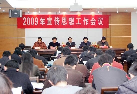 会上,校党委副书记、副校长左健民作题为“深入学习实践科学发展观,开创宣传思想工作新局面”的报告,并传达了2009年全省高校宣传思想工作会议精神。他从思想理论工作、宣传舆论引导、思想政治教育、哲学社会科学研究、文明创建工作、对外宣传工作等六个方面回顾总结了2008年宣传思想工作取得的成绩。左书记在报告中指出:2009年是应对国际国内重大挑战、推进全省高等教育事业又好又快发展的关键一年,国际金融危机的新发展、意识形态领域的新动向、高等教育发展的新追求、传播媒体发展的新趋势、维护稳定工作的新要求都对高校宣传思想工作提出了新挑战,我们要做好学习实践科学发展观活动的有关工作、做好庆祝新中国成立60周年的组织宣传工作、做好维护稳定工作、做好大学生思想政治教育及工作队伍建设、做好思想政治理论课改革工作、做好对外宣传工作,把握工作大局,进一步增强责任感和使命感,努力开创我校宣传思想工作新局面。
