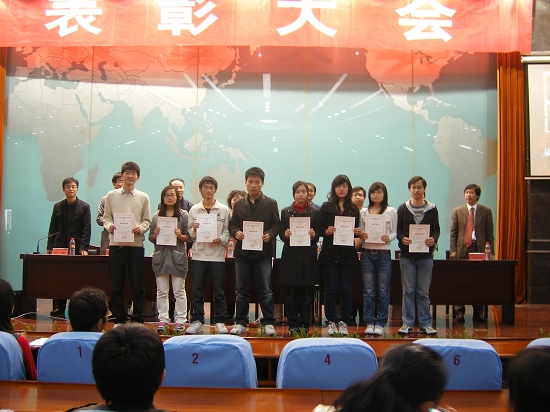 化学化工学院党委书记宣读表彰决定,对在第一届全国大学生节能减排社会实践与科技竞赛中获奖的团队和个人进行了表彰。颁奖仪式后,全国一等奖作品“微生物燃料电池”的主要负责人,生工051邹嫣同学发表获奖感言,她表示科技竞赛的参与经历整合了专业知识的学习,极大提高了创新能力,培养了合作精神,并呼吁全院同学积极参与科技创新活动。