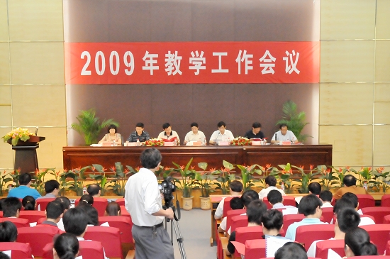 校长、党委副书记陈志刚作题为《学习实践科学发展观 全面深化“质量工程” 为培养高素质创新人才而努力》的教学工作报告,报告对2008年的教学工作了全面的回顾,对取得的成绩给予了充分的肯定,同时对2009年教学工作要点进行了全面的部署:(一)进一步全面深化“质量工程”,推动创新人才的培养工作;(二)以科学观为引领,不断创新人才培养模式;(三)组织教学改革与教学研究,培育省级以上教学成果;(四)完善完全学分制的管理制度,进一步提升教学管理水平;(五)加强对实践教学环节的管理,着力提高学生的创新精神和实践能力;(六)完善教学质量监控与保障体系,构建质量保证的长效机制;(七)加强网络教学平台及各类教学资源的规划及建设,不断提高教育信息化水平。