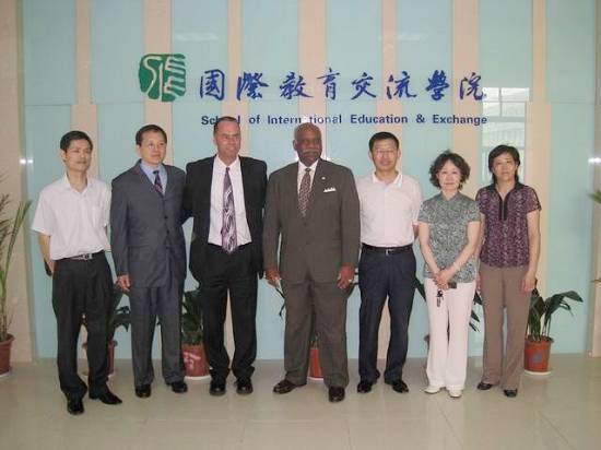 商务谈判在东区会议室进行,席间,孙小强副校长就我校的现况、发展历程、学科优势以及我校国际交流和合作方面的情况进行了详细介绍。美方Robert L. Head院长介绍了该校的发展特色并表达了与我校开展国际合作的诚意。双方进而就两校间高层互访、学生培养、教师交流和成人培训等方面进行了探讨并初步达成了共识。