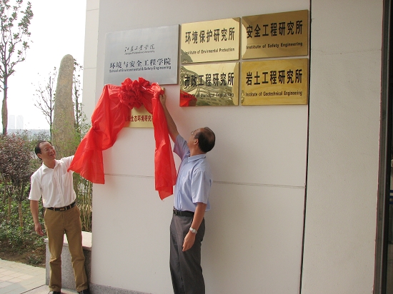 丁建宁副校长对南京环境科学所的到来表示欢迎,介绍了我校的发展历史和科研情况,希望以后能进行更广泛的合作,实现校所共赢。丁建宁副校长与南京环境科学所张永春副所长共同为太湖流域生态环境研究基地揭牌。