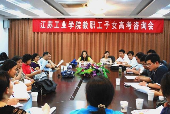 6月26日下午,我校在第七会议室首次召开2009年教职工子女高考填报志愿咨询会,有近30位教职工参加了会议。校招生就业工作处负责人为大家解读了2009年江苏省招生录取政策,对各录取时间段、志愿填报方式、录取投档原则及部分教职工所关心的子女报考我校的的一系列问题一一作了详细介绍;同时,宣布招生就业工作处为我校教职工高考子女开通了专门咨询热线。家长们也借此机会与招就处负责人作了详细的咨询和交流。