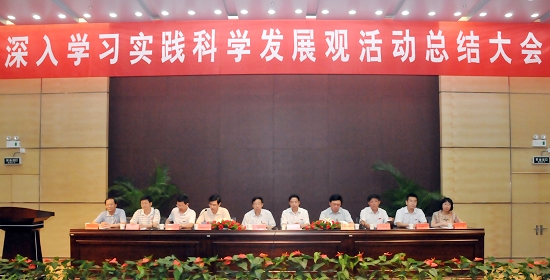 校党委书记、校深入学习实践科学发展观活动领导小组组长王雪峰作深入学习实践科学发展观活动总结讲话,对我校学习实践活动的基本情况作了全面总结和回顾。王雪峰书记从突出真学本色、突出转化特征、突出开放意识、突出群众路线、突出实践特色等五个方面总结了我校开展学习实践活动中的成功经验和鲜明特色。他说,我校将边学边改、边查边改贯穿学习实践活动始终,增强了贯彻落实科学发展观的自觉性和坚定性,建立健全了学校科学发展的体制机制,明确了教学研究型大学内涵建设的工作思路,增强了领导干部贯彻落实科学发展的能力,取得了一批推进学校新一轮又好又快发展的调研成果。他希望全体党员干部在抓理论武装上下功夫,在抓思想解放上下功夫,在抓自身建设上下功夫,在抓整改落实上下功夫,完善机制,加强整改,巩固和扩大学习实践活动成果,形成长效机制,为实现我校建设教学研究型大学的目标而努力奋斗,为推动科学发展,实现科教强省作出新的贡献,以优异的成绩迎接新中国成立60周年!