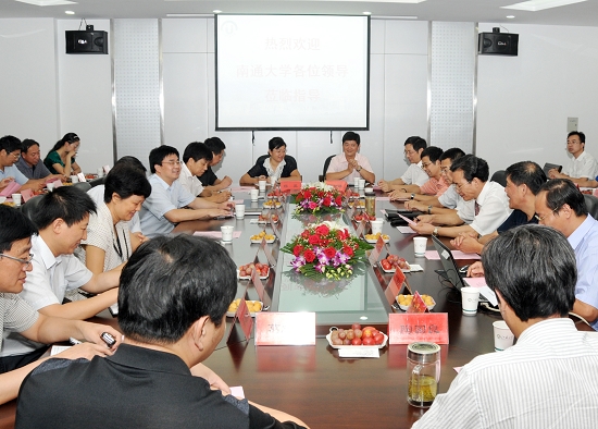 会上,史国栋书记致欢迎辞,丁建宁副校长详细介绍了我校的产学研工作情况,随后与会人员与代表团就“服务地方经济社会发展、产学研结合、校企合作、校校联动、科技创新基地、实训中心建设”展开了广泛的交流。南通大学校领导一行还参观了我校化工工业中心和科教城实训中心。