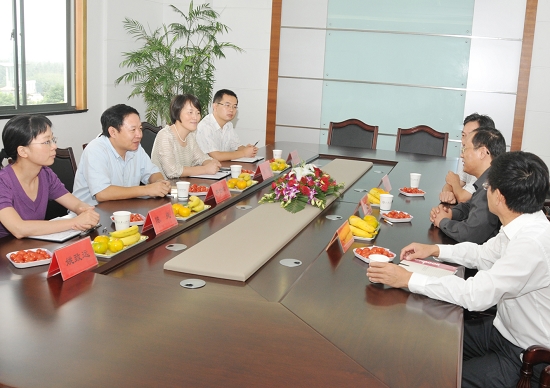 浦玉忠校长向客人介绍了学校的基本情况。李世收副市长对我校充分重视、大力支持常熟市产学研工作给予了高度评价并表示感谢。双方就继续推进科技特派员工作、着力建立产学研合作的长效机制等议题进行了深入交流并形成了广泛共识。