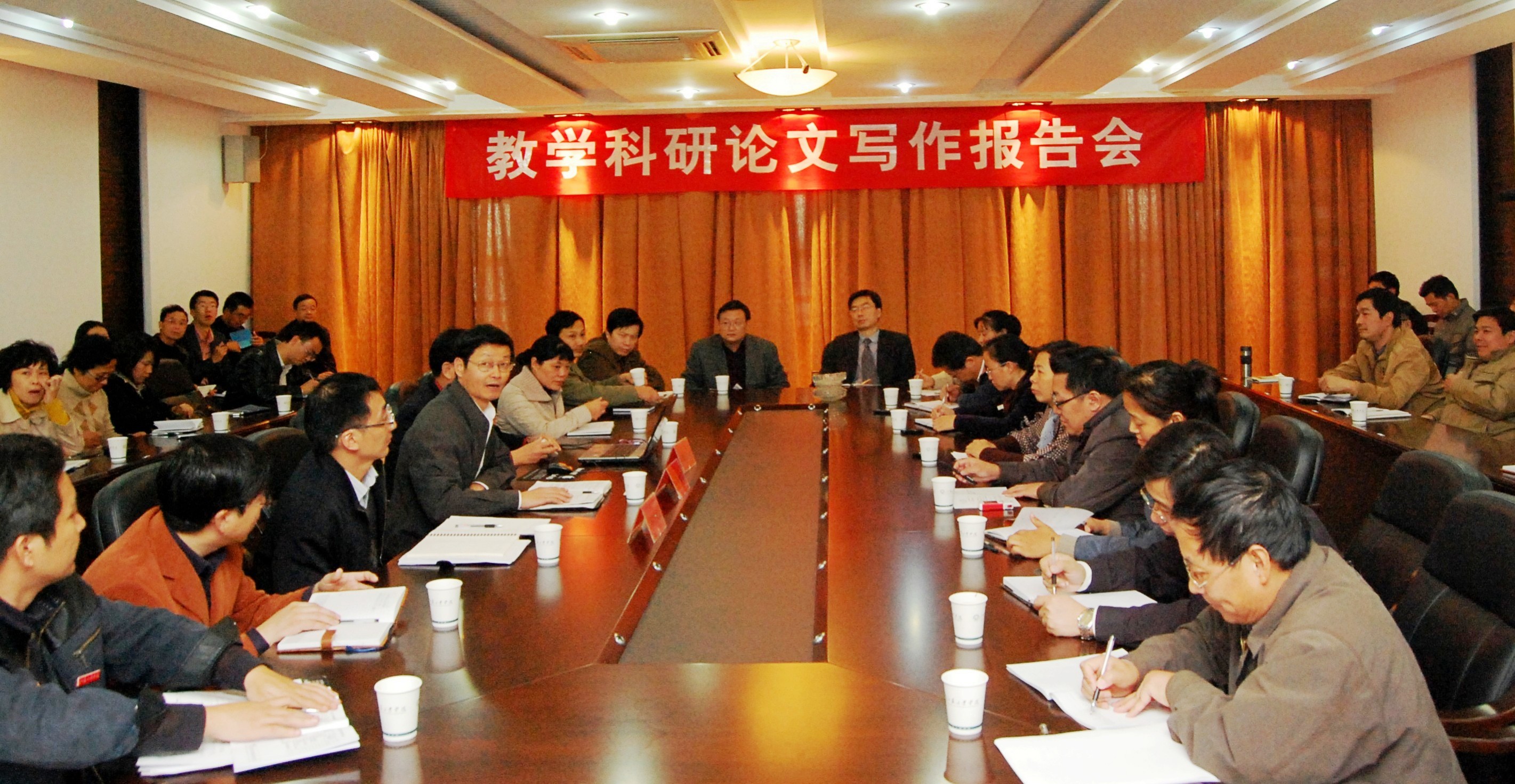2009年11月4日,《中国高教研究》杂志社副主编、北京理工大学陆叔云教授应邀在第七会议室作了题为《从编辑角度谈高教科研论文的写作及有关问题》的报告。各二级学院教学副院长、教学研究与改革骨干教师、教务处科级及以上干部听取报告。报告由蒋必彪副校长主持。