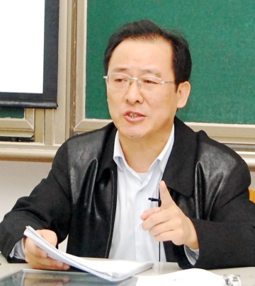 浦玉忠校长向客人介绍我校基本情况