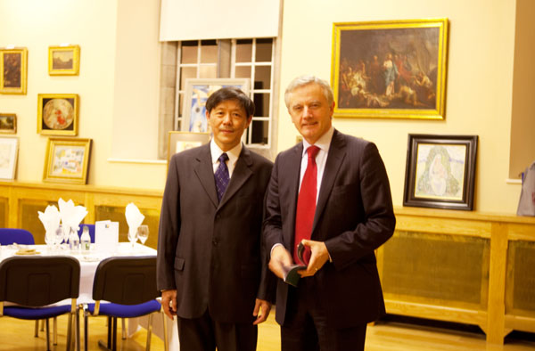 爱尔兰国立大学梅努斯校长John G.Hughes博士出席招待会并与访问团成员合影