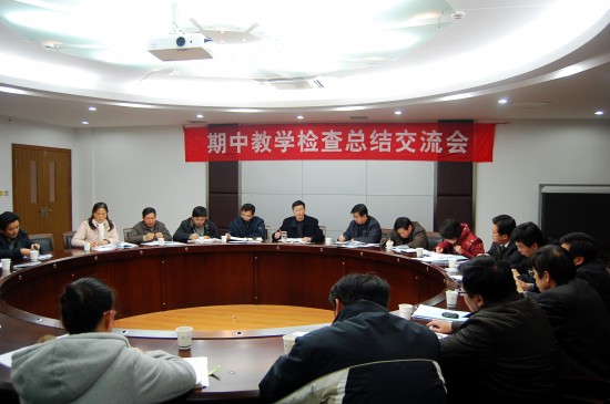 11月30日下午,我校在第一会议室召开了2009-2010年第一学期期中教学检查总结交流会。副校长蒋必彪出席会议并讲话,教务处负责人、各二级学院主管教学副院长参加交流。