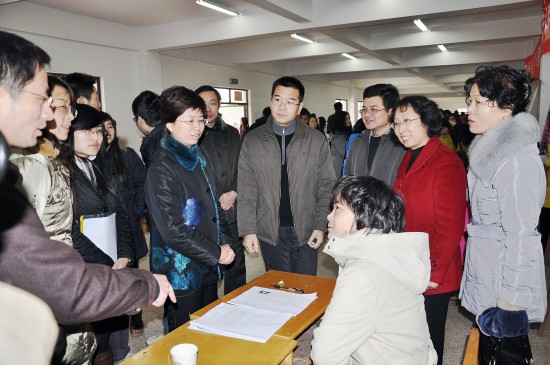 在支持中勇敢:市妇联王莉主席、吴小华副主席等领导和我校陈奎庆、王卫星副校长在招聘会现场指导工作