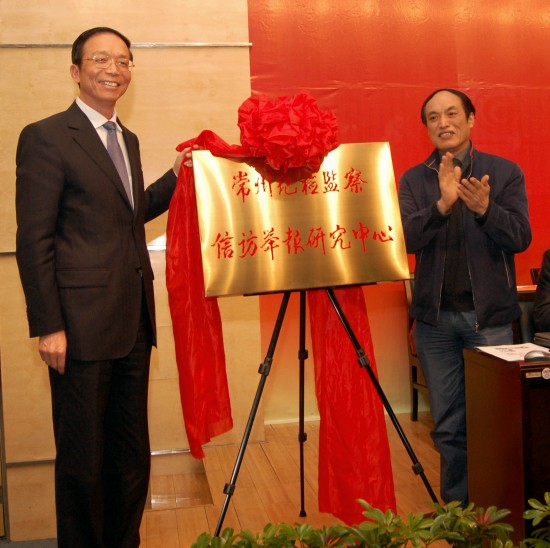 省纪委副书记王中远、省教育纪工委书记蒋吉生为“常州纪检监察信访举报研究中心”揭牌