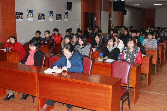肖殿华老师曾在德国、法国、加拿大等国家留学、工作近20年,是我校中加合作办学项目创始人之一。她讲述了中加项目的创建过程,学校为开拓合作办学,实施国际化战略所做出的努力;自己在海外学习工作的情况及见闻,并对国内外大学教育进行了比较,分析了我校合作办学的优势。肖老师希望同学们一定要珍惜学习的机会,并提出了几点条宝贵的建议:第一,要学好语言,这是在国外学习、生活的基础;第二,要掌握必要的专业基础,以尽快适应国外的教学;第三,了解外国多元文化背景,以尽快融入今后的国外求学生活;第四,要树立信心,培养自己独立生活的能力。
