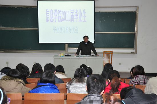 为进一步规范毕业环节各项工作,深化师生对毕业设计重要性的认识,落实管理措施及工作职责,信息科学与工程学院召开专题党政联席会及学院教学部门工作会,对相关工作进行了深入细致地研讨,对各项安排进行了周密部署。并于2月28日晚,在W6阶举行2011届毕业生毕业设计指导大会,学院党委书记柳铭、副院长杨长春、党委副书记储志新和全体辅导员出席了此次大会。