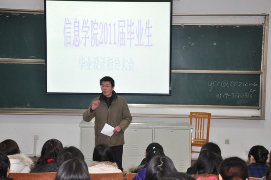 会上,杨长春副院长介绍了学院对毕业设计的相关管理措施和纪律要求,强调学院将建立指导教师、系部、学院逐级检查制度并定期进行抽检。储志新副书记就毕业设计的相关规定向大家做了说明,同时,就用人单位的招聘需求分析了当前的就业形势,敦促待业同学把握机会、及时就业。