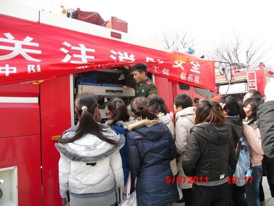 2011年3月5日,制药与生命科学学院与石油化工学院团委学生会开展“珍爱生命,关注消防”活动,武进消防特勤中队应邀参与了此次活动。