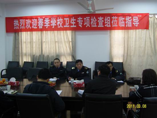 市卫生监督所监督科专家一行3人听取了后勤管理处关于我校春季卫生安全工作开展情况的工作汇报,并深入现场仔细检查。在意见反馈会上,检查组充分肯定了我校在春季食品卫生安全、传染病防治、健康教育方面的工作。同时,对进一步做好卫生安全工作提出了意见和希望。