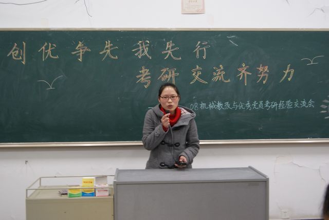 3月10日晚上,机械工程学院08级教改班在南教学楼101室举行了“创先争优我先行,考研交流齐努力” 优秀党员考研交流会。机械工程学院副院长胡爱萍、学工办老师及考研优秀党员代表出席会议,机械教改081、082班全体同学参加了此次交流会。交流会由副院长胡爱萍主持。