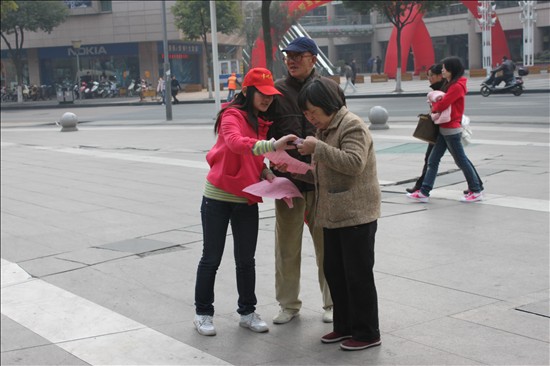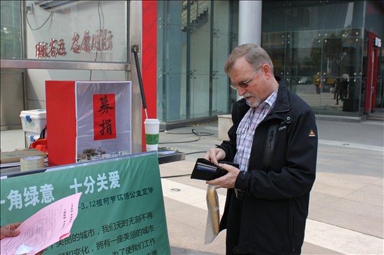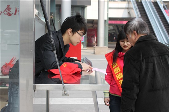 当天上午9点,社联的志愿者们四人一组,带着事先准备了的花种子和印有保护绿化倡议书以及绿色节能小窍门的宣传单,来到莱蒙都会志愿者岗亭开展环保宣传活动。志愿者们有的拿着宣传单走到行人面前,向他们赠予花种,并邀请他们参与募捐活动;有的则在一旁为行人讲解植树节的来历和植树节的纪念意义,并向路人介绍我国环保现状。同学们的热情感染了路上的行人,参与活动的有年逾花甲的老人、稚气未脱的儿童,一些路经广场的外国友人也积极参与到活动中来,用积极行动表达“老外”对环保活动的关注。志愿者们感受到了“赠人玫瑰,手有余香”的幸福和社会大众对于环保的热情。