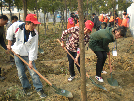 为大力提倡植绿、爱绿、护绿的新风尚,倡行低碳生活,在第33个植树节来临之际,常州大学怀德学院二系学生代表与常州工学院、河海大学、江苏技术师范的大学生们组成四校志愿联盟团,来到邹家村进行植树护林活动。