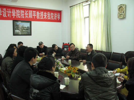 顾平教授介绍了江南大学设计学院的学科建设情况,并就艺术学科的学科建设、教学、科研、艺术创作及课题的申报等问题给艺术系教师作了报告,受到了艺术系老师的好评。