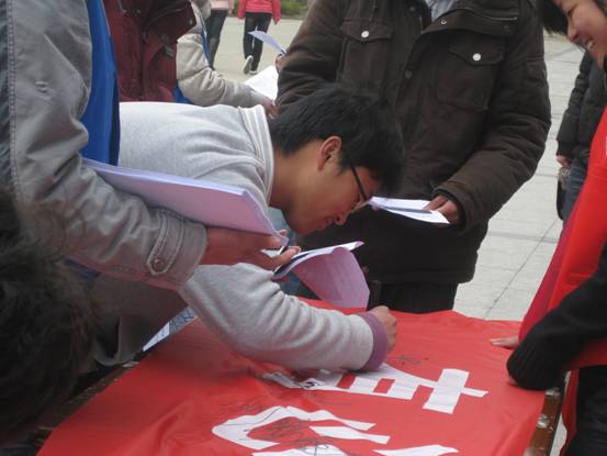 今年是第十九个“世界水日”,3月22-28日是第二十三届“中国水周”,今年的“世界水日”的主题是“城市供水应对挑战”,旨在提醒和鼓励各国政府、组织、社区和个人通过城市用水管理提高水质。学生会的同学们通过个人签名、发放节水传单等形式,来唤醒当代大学生水资源的节约和保护意识,为我们的下一代着想。我们应牢记“节约用水,每一天”,从身边的小事做起。此次活动取得了较好宣传效果。