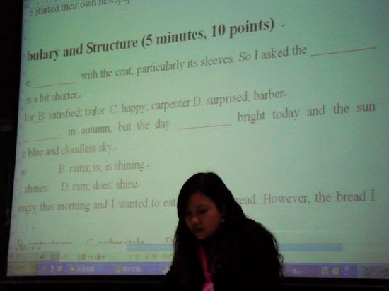 邱菲老师首先对全国大学生英语竞赛的基本概况、题型特点、应试技巧及全国大学生英语夏令营等方面进行了详细的讲解,其次结合2010年竞赛的样题逐项分析了参赛中的注意事项与答题要领。最后,邱菲老师讲述了参加英语竞赛取得好成绩的秘诀“多做题,快做题”。