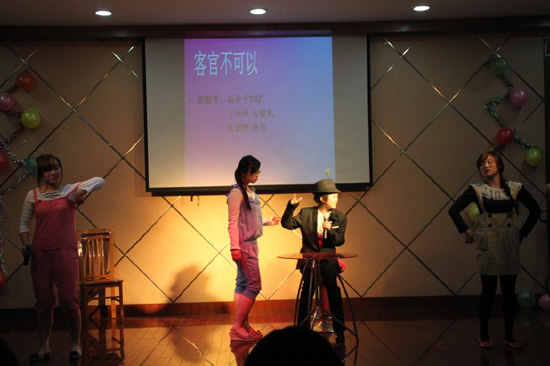 决赛分为才艺表演和问答题两个环节。各组女生首先进行小品、相声、合唱等才艺表演,再进行礼仪、时政等知识问答,各组女生纷纷大显身手,一改工科女生内敛含蓄的传统印象,将材料学院女生的多才多艺,以及浪漫不失幽默的情怀展现给了现场每一位观众。经过一场激烈的角逐后,由材料102班女生表演的话剧《杨门女将》夺得桂冠。金材102、高分子104 及高分子102、高分子101、金材101分别获得二、三等奖。