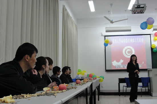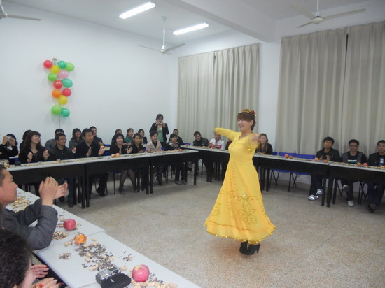 为了丰富学员们的业余生活,增强各民族之间的文化交流,在大家的精心筹划、有序组织下,4月9日晚我校新疆籍培训班首次文艺活动在明行楼115教室顺利举行。此次文艺活动学员们激情满怀,踊跃表演,一首首充满各少数民族特色的歌曲,一曲曲带着各民族风情的舞蹈展现了祖国大家庭下各少数民族能歌善舞、多才多艺的民族特色。