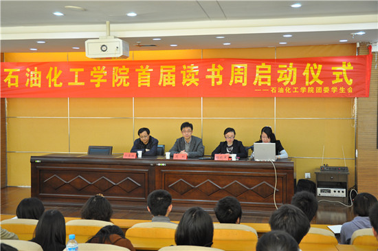 为了迎接即将到来的联合国第十六届“世界读书日”,发扬“好学善学,爱书护书”之风,促进图书馆资源的保护与合理利用,增进学院学生图书使用意识,4月18日下午,石油化工学院首届读书周启动仪式在图书馆六楼报告厅隆重举行,图书馆期刊部主任孙荣林,石油化工学院党委副书记周刚出席了本次启动仪式。