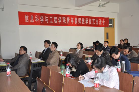 根据《关于开展2011年度“常州大学青年教师课堂教学技艺大赛”的通知》精神,为做好青年教师的选拔推荐工作,信息学院特召开党政联席会议进行专题研究,并制定了《信息科学与工程学院参加校青年教师课堂教学技艺大赛推荐人选评选办法》。本学期共有15名青年教师申报参赛,通过各系的认真初选,共推荐8名教师参加了4月19日的院级选拔赛,院领导、各系部主任及近3年新进青年教师参加了此次选拔赛,选拔赛由副院长杨长春主持。