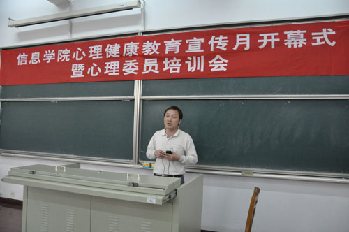 4月25日下午,信息科学与工程学院心理健康教育宣传月开幕式暨心理委员培训会在W9阶举行。院党委副书记储志新、校大学生心理健康教育与研究中心蔡亚敏老师、学工办老师及所有班级心理委员及班委参加开幕式。