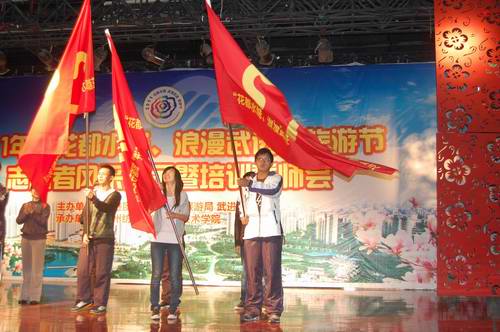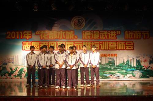 4月27日下午,在常州纺织服装职业技术学院举行2011年了“花都水城 浪漫武进”旅游节志愿者风采展示暨培训誓师大会,武进区体育局、团区委、纺院团委领导出席并参加了此次活动。外国语学院34名志愿者参加了本次活动,他们将承担4月27日、28日的旅游节开幕式活动以及5月7日、8日的旅游节龙舟赛活动的志愿者服务工作。近年来,外国语学院的志愿者队伍已经成为该学院的一张亮丽的名片,曾多次承接国际国内大型活动的志愿者服务工作,并获得了良好的口碑,向社会各界展示了常大学子的良好精神风貌。