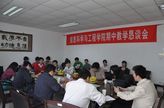 为进一步加强师生之间的沟通交流,提升学院的教学工作质量水平,4月28日下午,信息科学与工程学院在文约楼302会议室召开期中教学恳谈会。院党委书记柳铭、副院长杨长春、副书记储志新以及各系主任出席,学工办全体老师和各班级学习委员参加了本次座谈会。座谈会由学工办蒋蕾老师主持。
