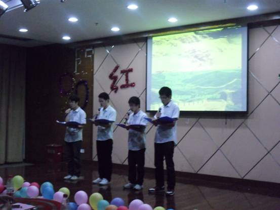 同学们用他们各异的风格围绕着主题深情地朗诵着,他们用自己的声音诠释着对诗歌的热爱,对祖国的热爱。听众的思绪随着选手的精彩诵读,驰骋在建党以来九十载辉煌的历史之中,情感也不由跌宕起伏,时而感慨,时而欢喜,时而骄傲。一首《沁园春·长沙》慷慨激昂,抒发凌云壮志的革命豪情,将此次朗诵会推向了高潮,《五月的天空》则展现的是清新雅丽、柔和而又不失刚强的一面,让人耳目一新,最后本次诗歌朗诵赛在一曲《红旗飘飘》中落下帷幕。