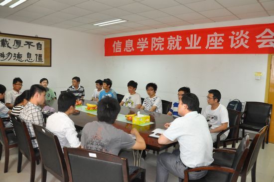 为了解未就业同学存在的困难,促进学院就业工作,5月10日,信息科学与工程学院在文约楼302室举行就业座谈会,院党委副书记储志新,怀德学院三系系主任郑明芳,毕业班全体辅导员及毕业班未就业同学代表参加,座谈会由韩福东老师主持。
