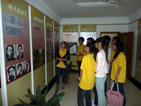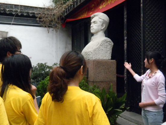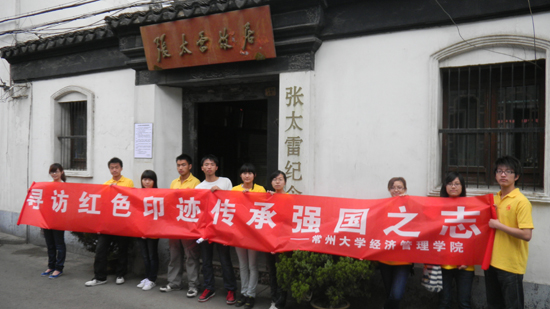 张太雷纪念馆位于常州市清凉路子和里3号,由张太雷故居、张太雷生平事迹陈列室和共青团史陈列室三部分组成。邓小平同志亲笔题写的“张太雷故居”牌匾高高悬挂,在阳光下熠熠生辉。一走进纪念馆,映入眼帘的是一尊张太雷半身像。庄严,肃穆之感油然而生,每位同学都不由自主的深深鞠躬以向为革命献身的先烈表达最崇高的敬意。在讲解员的带领下,同学们有序的参观了张太雷故居,并通过一系列的图片文字等历史资料了解了张太雷的生平及那段动荡的历史。一件件珍贵的历史资料展示了张太雷伟大的革命业绩和崇高的精神世界。一幅幅震撼人心的照片仿佛把我们带回到了当年热血沸腾的革命时期。同学们更是拿出笔记本,记下所感所悟。有的同学难掩激动之情,在馆内留言簿上一笔一划地庄重写下“向张太雷同志致敬!”同学们纷纷表示,本次活动使他们受益匪浅,不仅了解了历史,更激发了努力学习,报效祖国的热情。