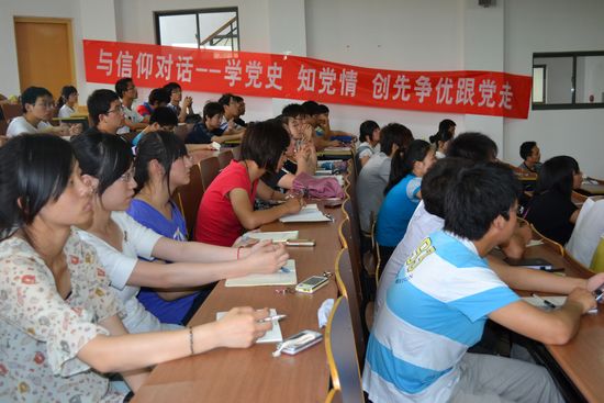 为了进一步促进青年学生学习党史,了解党情国情,增强党性修养,树立正确的人生观、世界观,做一名合格的青年马克思主义者,近日校团委邀请南京大学历史学博士、我校图书馆吕杨老师在第十阶梯教室举办了一场主题为“中流砥柱,红色轨迹” 纪念建党90周年党史学习报告会,来自全校的100多名学生以及“星火训练营”高级骨干培训班的学员们听取了报告。本次报告会是校团委“与信仰对话——学党史、知党情、创先争优跟党走”系列活动之一。
