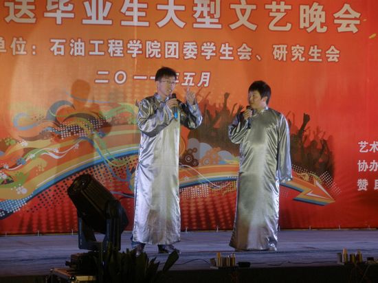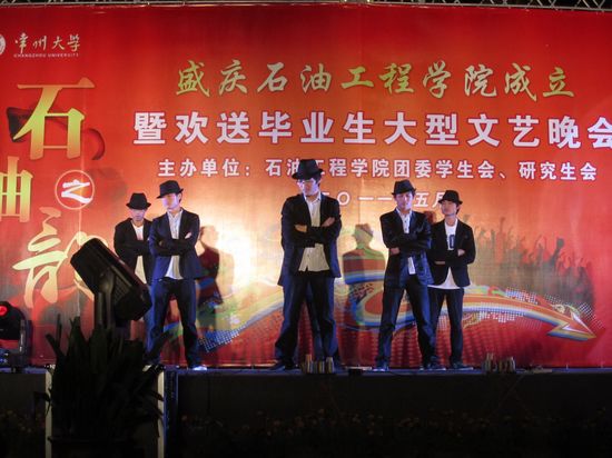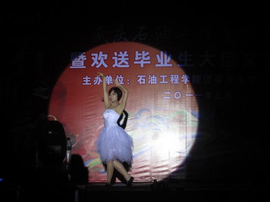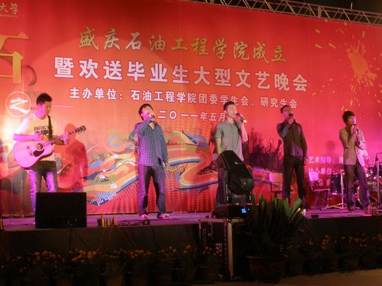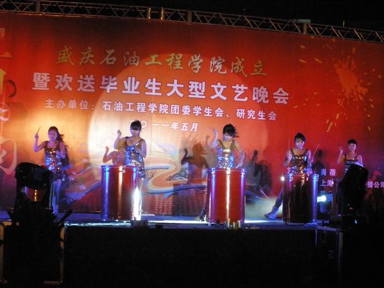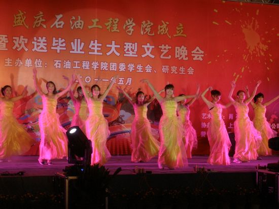5月28日晚,盛庆石油工程学院成立暨欢送首届毕业生大型文艺晚会“石油之韵”在白云校区南教学楼前广场隆重举行。晚会邀请到江苏省教育厅、校学生处、校团委、白云校区、机械学院、信息学院、环境学院、怀德学院等相关学院领导和老师以及常州曲艺团、花园敬老院、天爱康复中心、三堡街社区等社区工作人员一同观看了晚会。
