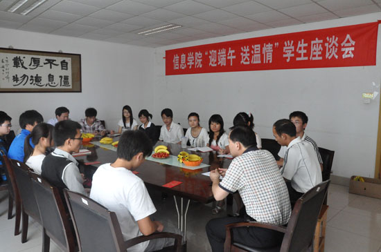 为进一步了解家庭经济困难学生的生活、学习情况,更好地开展家庭经济困难学生的教育管理工作,端午佳节即将来临之际,信息学院开展“迎端午 送温情”学生座谈会。院党委副书记储志新、学工办老师以及本、硕学生代表出席了座谈会。
