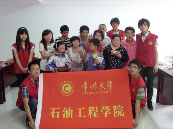 6月1日上午,石油工程学院团委志愿者来到新北区河海街道的智力残障儿童庇护托养中心,与智障儿童们共同欢度“六一”儿童节。