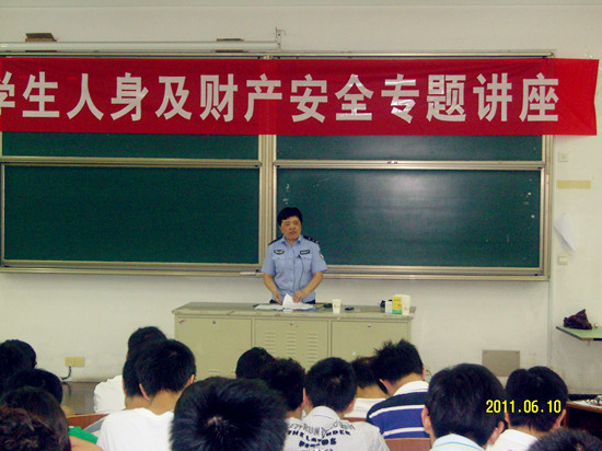 为提高学生的人身及财产安全防范意识,防范大学生中人身及财产安全案件的发生,6月10日下午,学校保卫处特邀科教城派出所沈春兰所长为我校大学生作了题为“大学生人身及财产安全专题讲座”,200多位学生及辅导员在教学楼W15教室聆听了报告。保卫处处长王瑾、副处长李晓明出席报告会,王瑾处长主持报告会。