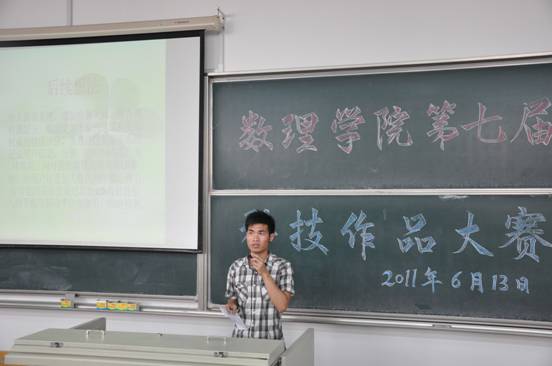 为营造良好的学术氛围,提高大学生的科技创新意识,6月13日中午,数理学院第七届课外科技学术作品大赛在13阶隆重举行。院党委书记蒋美萍、院长孙玉强、党委副书记张功峰、副院长石澄贤以及各系系主任应邀出席此次大赛并担任大赛评委。2010级全体同学观看了比赛。