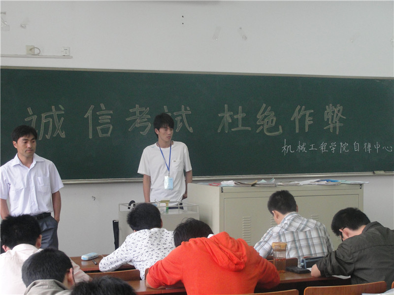 伴随着四六级和期末考试的临近,机械工程学院立足实际,以抓考风考纪为重点,以做好学生工作为目的,充分发挥学院学生党员自律中心平台作用,开展抓考风、促学风活动,营造良好考风氛围,杜绝作弊行为。