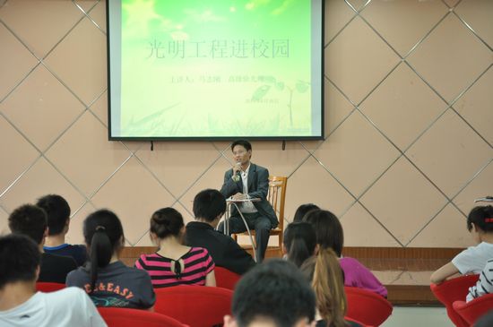 6月16日下午,江苏常州质量技术监督局走进我校开展“光明工程进校园”公益活动。常州质监局的工作人员在大学生活动中心三楼多功能厅为我校学生作专题讲座,普及爱眼护眼知识。专家为在座学生分析了造成眼睛近视的原因,建议大家平时要采取正确的写字和读书姿势,注意每隔45分钟就要让眼睛休息,要保证适当的户外活动并锻炼身体。专家还就如何选择好的眼镜、如何对眼镜进行正确的保养以及如何正确选配太阳镜提出了专业意见。