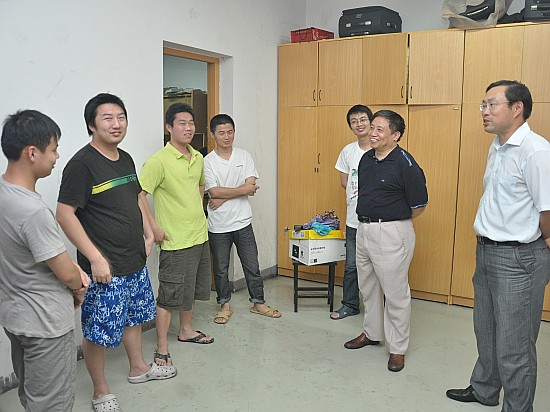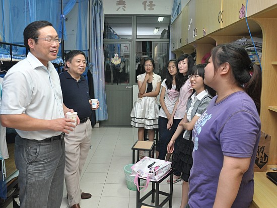 骊歌声声,新帆起航。6月21日晚,环境与安全工程学院党委书记朱正伟、副书记许波率领学工办全体教师深入学生宿舍看望慰问2011届毕业生。学院领导亲切询问了毕业生们的学业、就业和生活情况,为即将踏上人生新征途的他们送上温暖祝福。