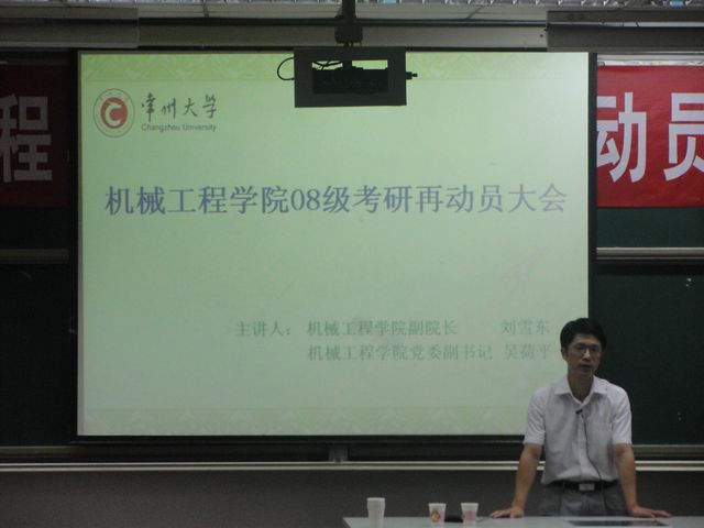 6月28下午,机械工程学院08级在南一阶召开了考研再动员大会。机械工程学院副院长刘雪东、党委副书记吴荷平、学工办