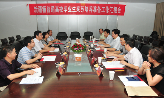 汇报会上,王卫星副校长就我校首批新疆培训班的培养情况、第二批新疆培训班的准备情况进行了全面汇报,倪道潜副厅长对我校首批新疆培训班第一学期的工作给予了高度肯定,同时要求学校总结经验不松懈,再接再厉更细心;在教育培养上要求教学计划具有针对性,要实用适用;要选派优秀的教师授课,除了要有很强的业务能力以外,还要有政治责任性、耐心与爱心;最后对清真餐厅的改造提出了具体的要求。