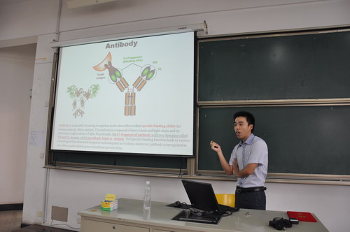 9月16日,制药与生命科学学院两位兼职教授——常州市科技局副局长蒋鹏举及常州天磊生物技术有限公司董事长卢磊磊在武进校区16阶为该院师生作了题为“细胞迁移中的细丝蛋白—细丝蛋白与配体的相互作用与组装”及“Highly enhanced cytotoxicity of a bispecific diabody for cancer immunotherapy”的学术报告。本次报告由该院党委书记王车礼主持。